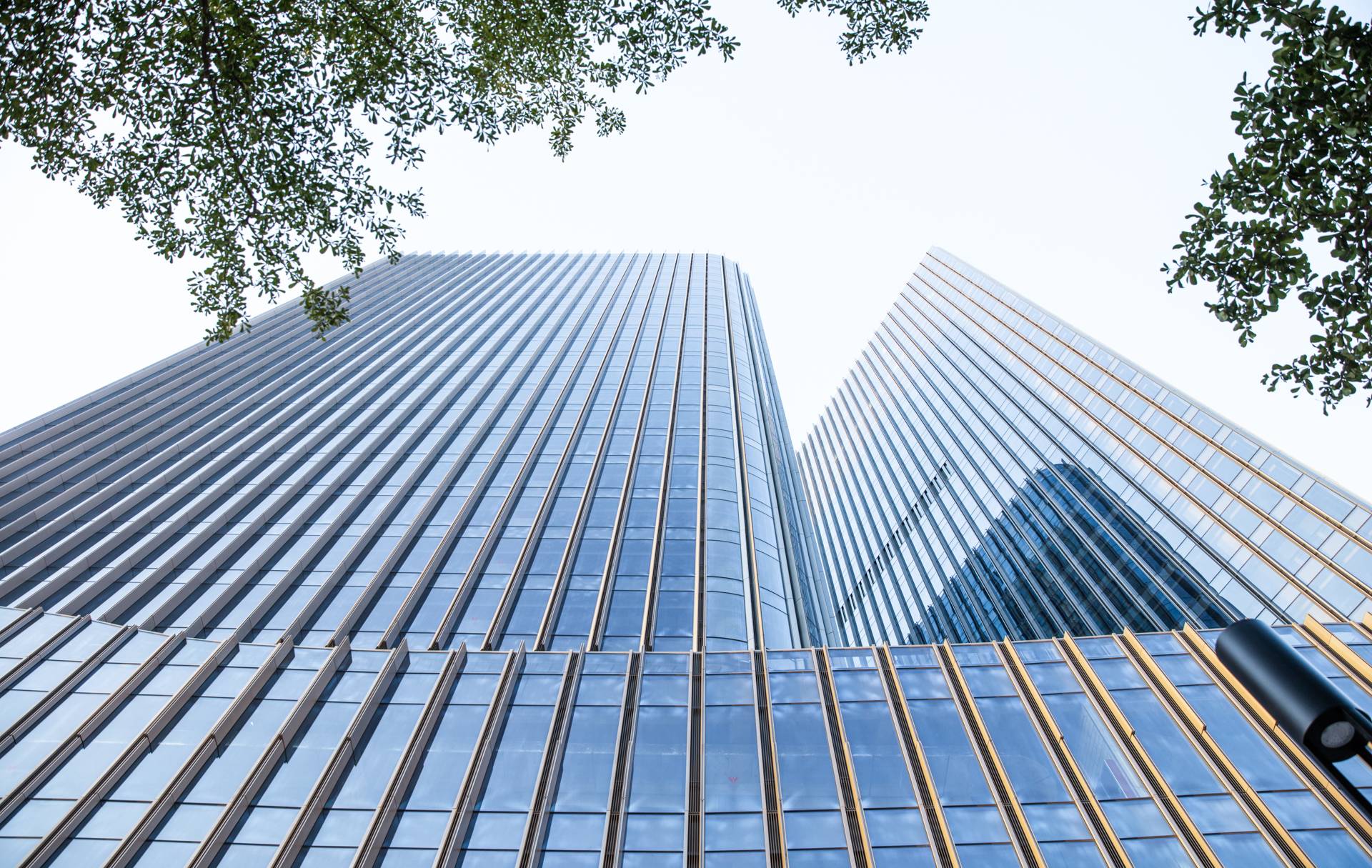 项目用地为不规则的狭长地块,设计团队巧妙的规避了地块的局限性,结合传统文化“天地、方圆”,提出了“一方一圆”两个不同的塔楼造型方案,两栋办公塔楼通过裙房紧密相连,方圆互补、刚柔相济。在充分实现土地利用效率的同时,形成了均衡而非对称的建筑体量,在整体协调性和美感上达到最优,为城市空间增添了醒目的地标,以一种“和而不同”的姿态,融入城市天际线。