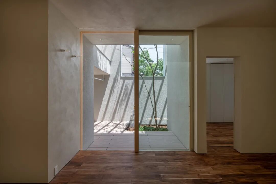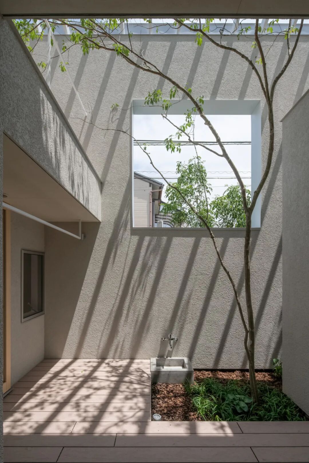 “奥池の家”的外墙用混凝土保护着墙内人的隐私,但院内用了大量的玻璃墙,让室内不至于压抑,再加上小花园的点睛,整个建筑空间清爽宜人。