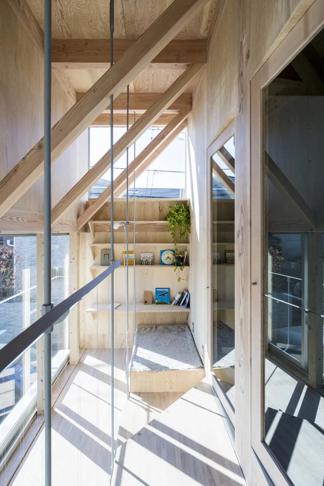 takamine-cho house 另一个特立独行的尝试则是颠覆了上下两层的刻板布置,在这座房子里,卧室反而位于底层。
