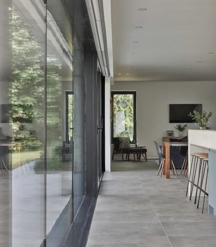 庭院可以从所有起居空间和主卧室直接进入。客人和儿童的卧室位于底层较安静的区域——每个房间都可以通往较低的花园。