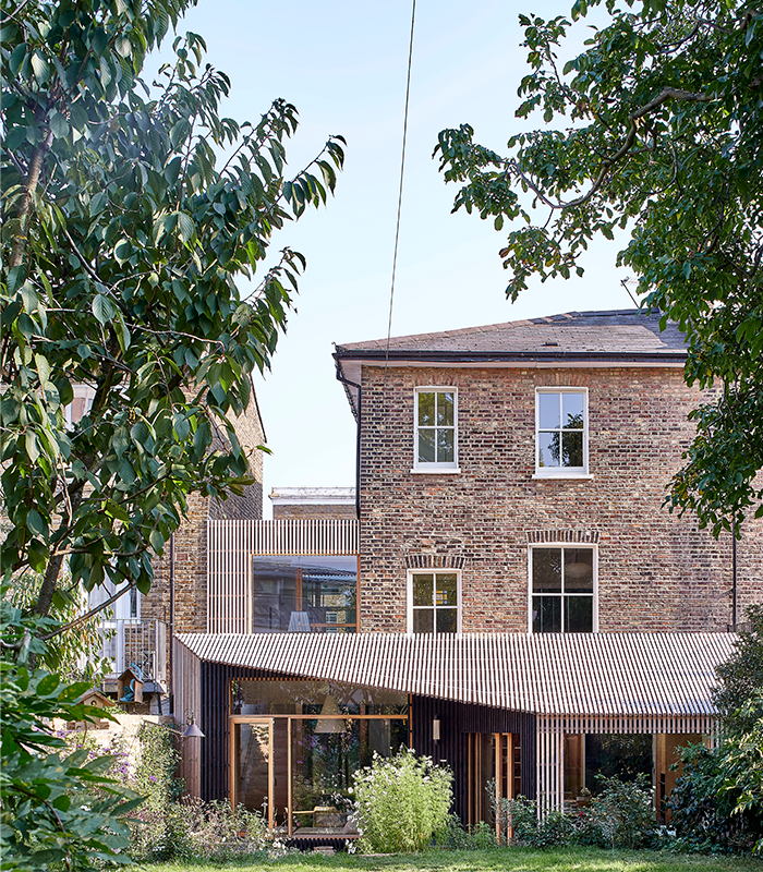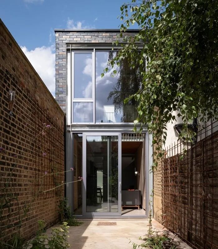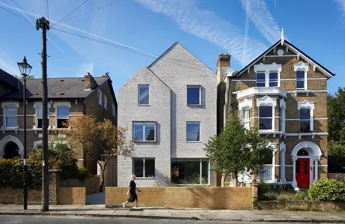 这座新建筑修复了在二战期间遭受炸弹破坏的维多利亚时代街道,街道中还有一座建于 1960 年代的不起眼的建筑。虽然房子有一个新的立面,但它是围绕现有的两层房子建造的。当人进入这座位于历史保护区内的迷人三层六床、独立式家庭住宅的前花园时,会感到日常生活的压力开始消退。