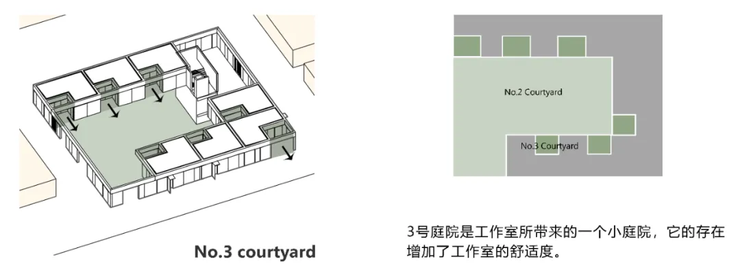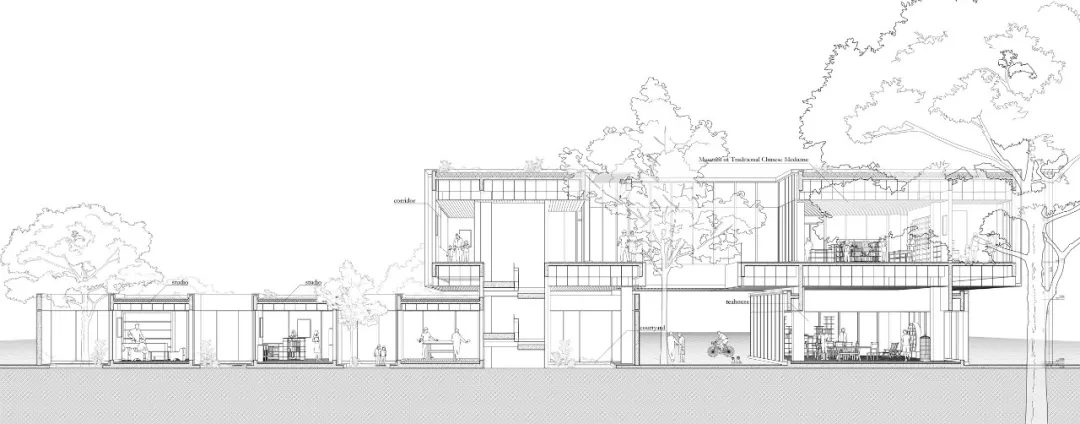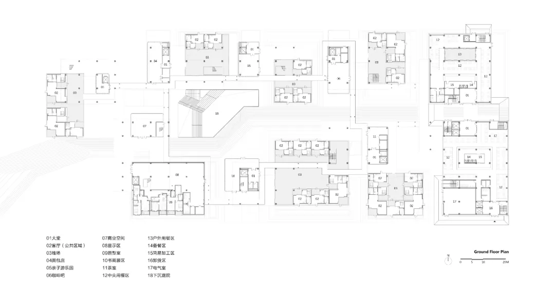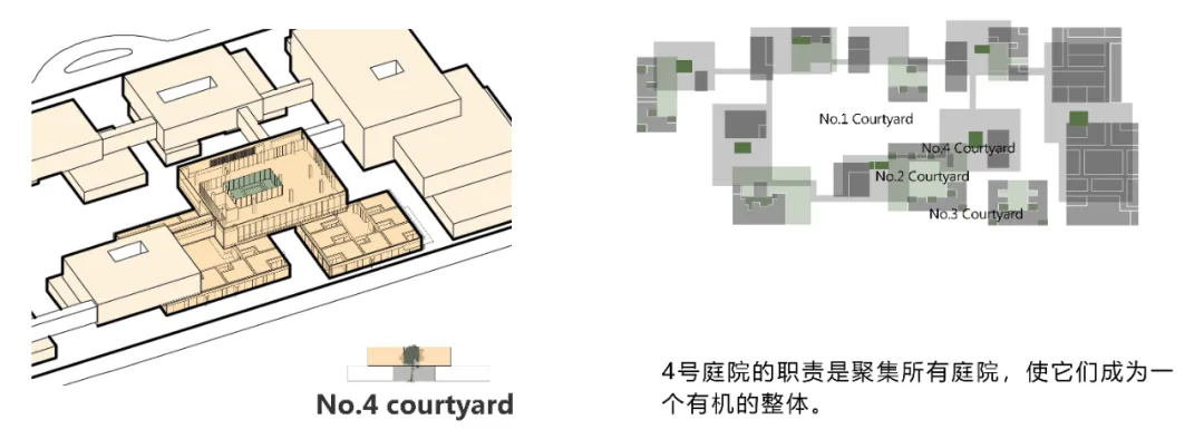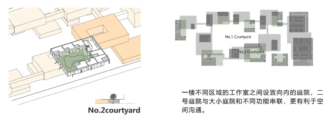 The decentralized facilities consists of a series of staggered and overlapping courtyards. During the design process, we sought to precisely control scenes while leaving room for design "tolerance."