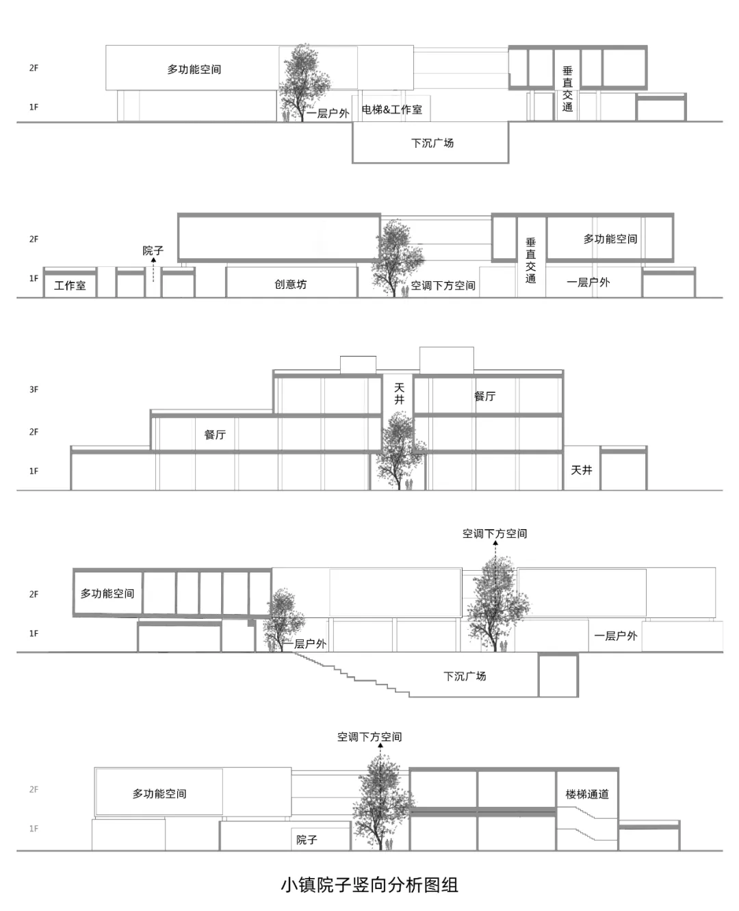 ▲ 剖面-小镇中心的多级庭院 Sections - Multi-level courtyards of Village Center