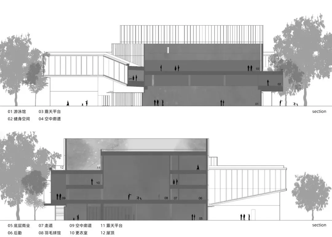 ▲ 剖面-综合楼 Sections of Sprots Complex