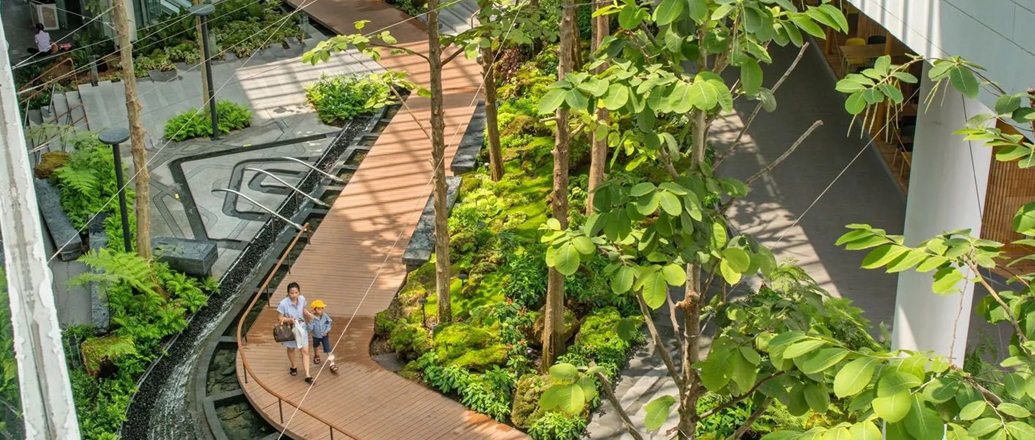 在东京、香港、新加坡这类高密度城市里,“绿化建筑”早已不新鲜:拥有垂直花园的商业体,随处可见的口袋花园等等。