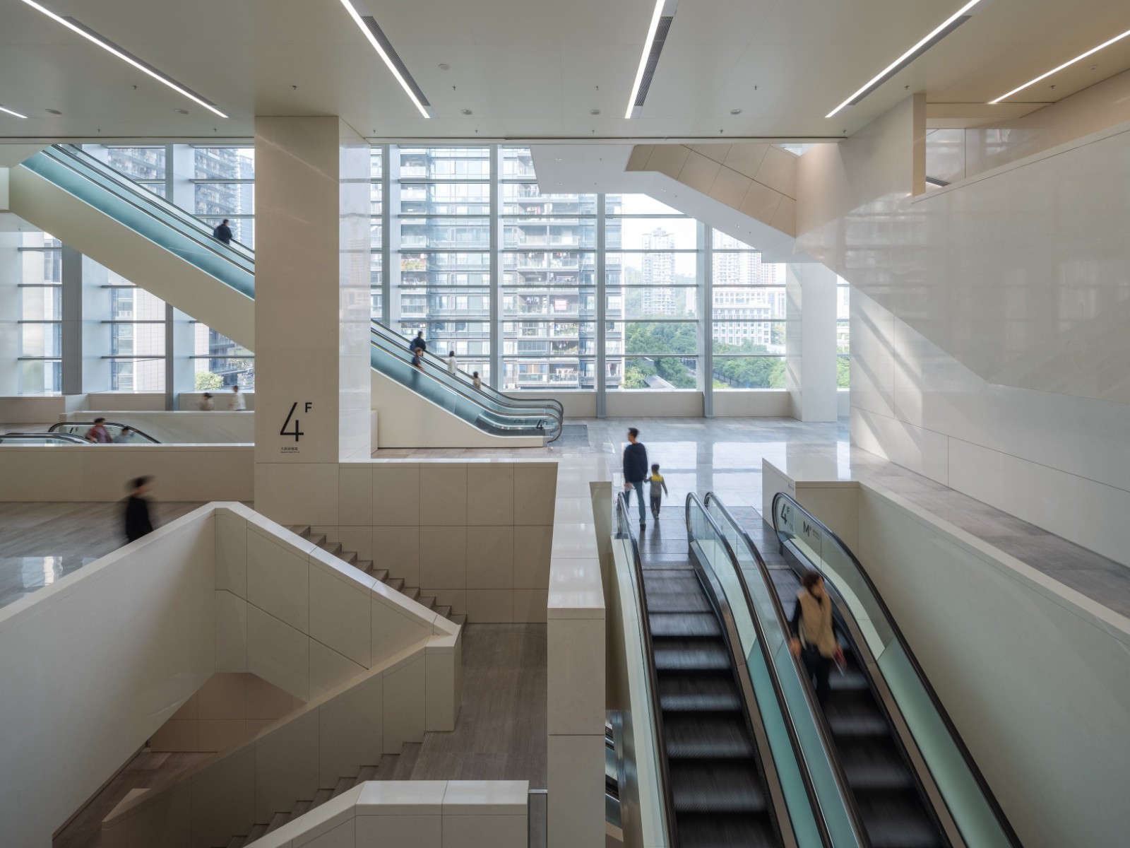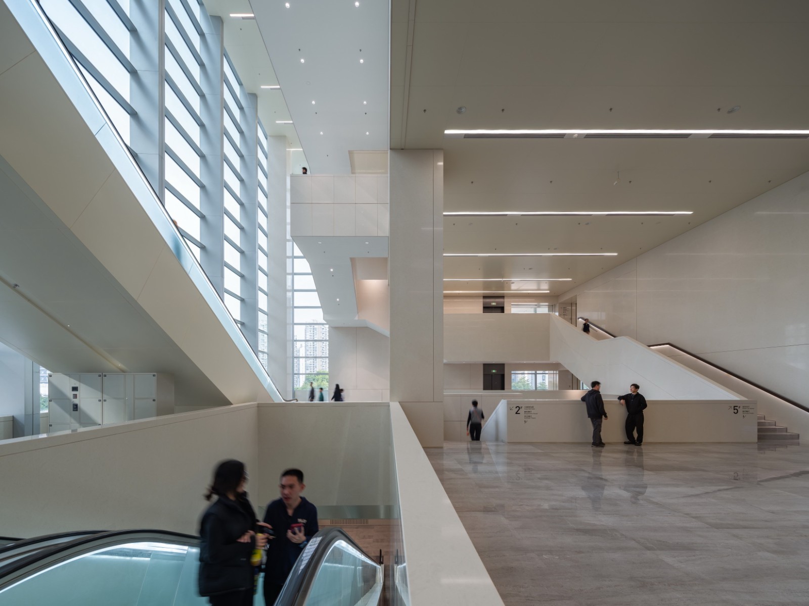 除了宏大的观演空间,项目内还植入了可承载持续性文化艺术活动的展览馆与图书馆。这些空间并非附属,而是构成“立体文化生态系统”的公共节点。