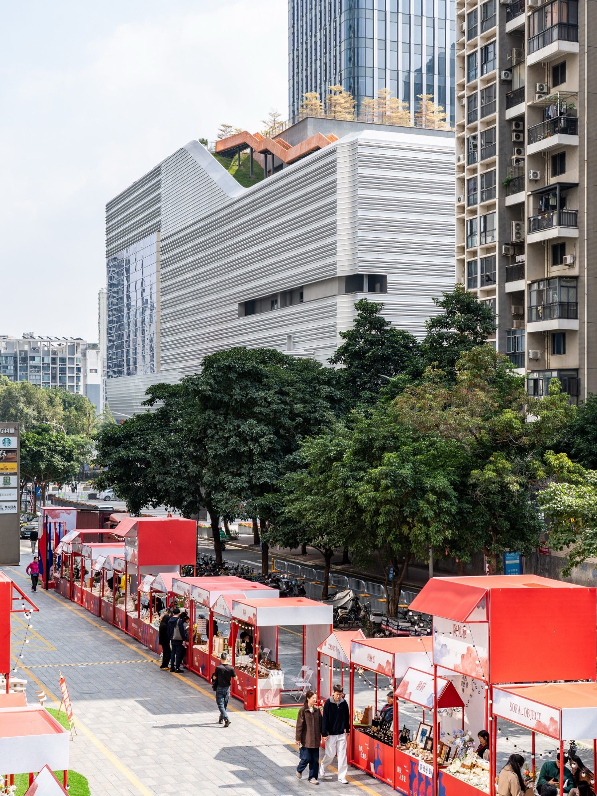 在地面与地下一层我们创造了南北贯穿的架空“灰空间”,为深圳的气候提供了遮阳避雨的休憩场所。同时,面向街道的开放界面打破了文化建筑的封闭,构建社区生活的核心舞台。这里没有围墙与闸机,市民可以自由穿行、小憩、观看街头表演,使文化建筑的边界彻底消融,成为社区客厅的自然延伸。